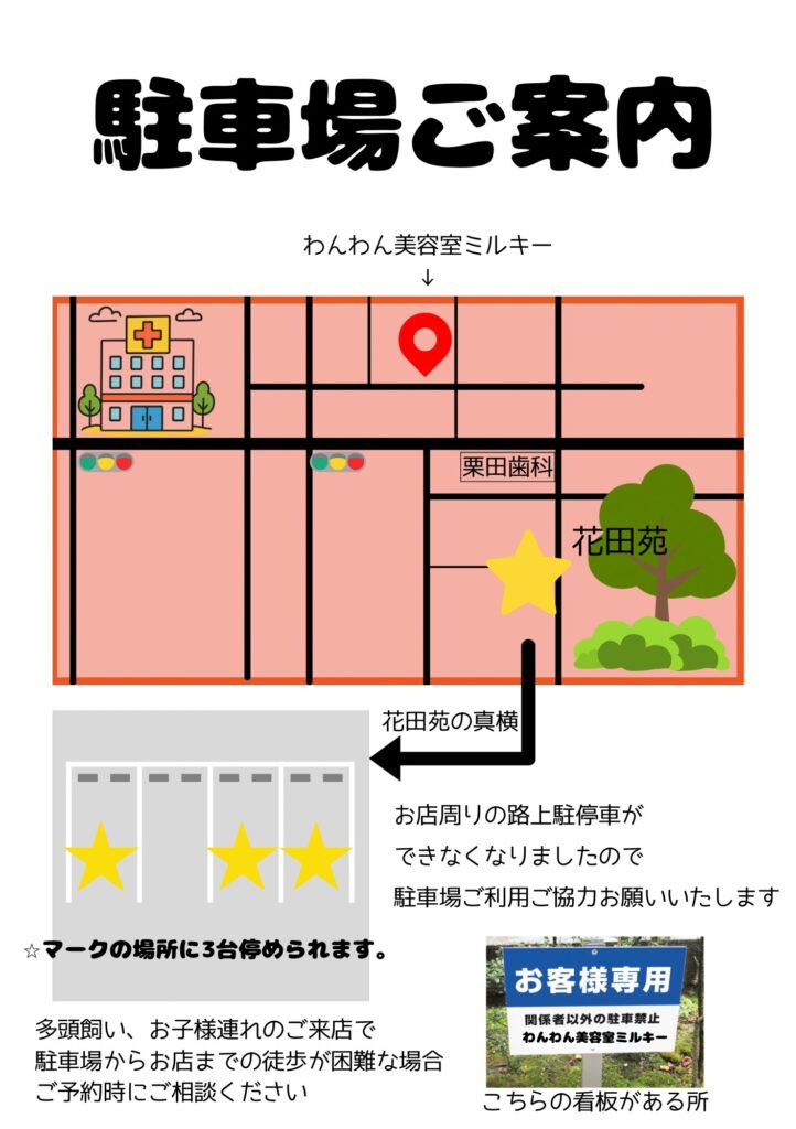 いつもご利用ありがとうございます(ᐡᴗ͈ ̫ ᴗ͈ᐡ)”駐車場が確保出来ましたので、ご案内いたします。お客様専用の看板がまだ設置できていませんが、10月25日からご利用できます。